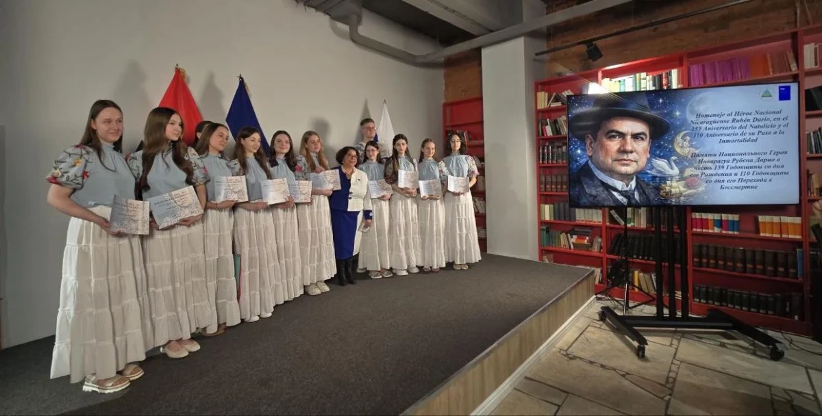 En el marco de este homenaje se llevó a cabo la premiación de los ganadores de los “Certámenes de Declamación e Ilustración de la Jornada Dariana 2026”, organizados por la misión nicaragüense en Moscú. Durante dos semanas en el salón de lectura de la Biblioteca Rudomino se exhibirán al público las ilustraciones infantiles de la Jornada Dariana 2026 en la Federación de Rusia.