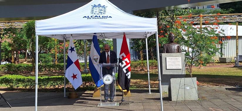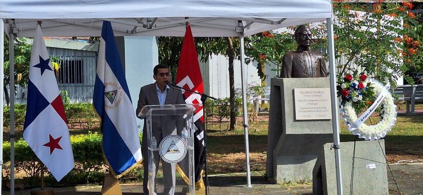 La Embajada de Nicaragua en Panamá, en representación del Buen Gobierno de Reconciliación y Unidad Nacional y Pueblo nicaragüense, llevó a cabo, este Jueves 5 de Febrero, una Ceremonia de colocación de Ofrenda Floral, con motivo del 110 Aniversario del Paso a la Inmortalidad del Héroe de nuestra Patria y Nuestramérica, Padre y Maestro Mágico, Poeta y Pensador Universal, Rubén Darío.