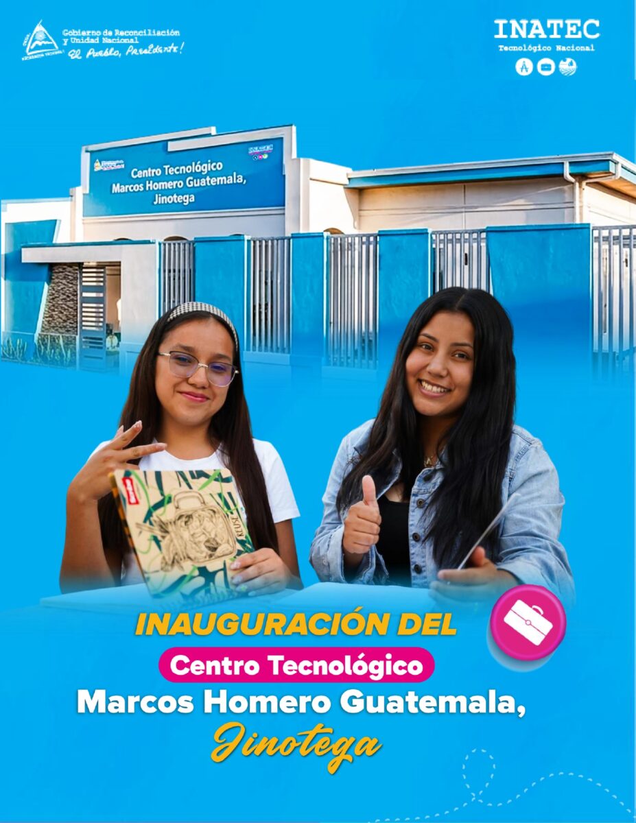 Junto la Juventud Heroica de Todos los Tiempos, este 9 de Abril en celebración al Mes de la Paz, el Instituto Nacional Técnico y Tecnológico (INATEC), entregó a las Familias de Jinotega, las nuevas instalaciones del Centro Técnico “Marcos Homero Guatemala”, ubicado frente al Parque Central de este Municipio, un espacio para la formación técnica y tecnológica gratuita y de calidad.