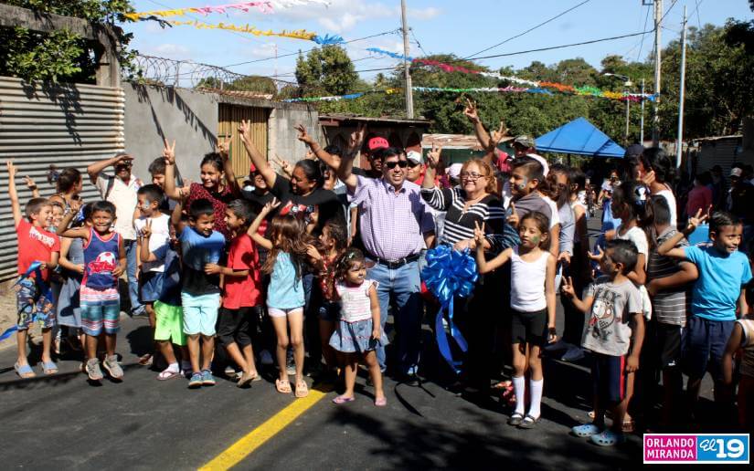 Autoridades de la Alcaldía de Managua junto a pobladores inauguró 15 cuadras asfaltadas en el barrio Memorial Sandino. Este proyecto tuvo una inversión de 10 millones de córdobas y beneficiará a 9 mil personas.