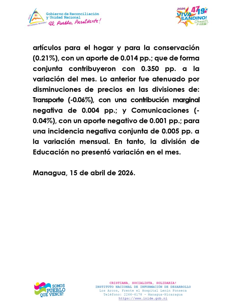 Managua, 15 de abril de 2026.