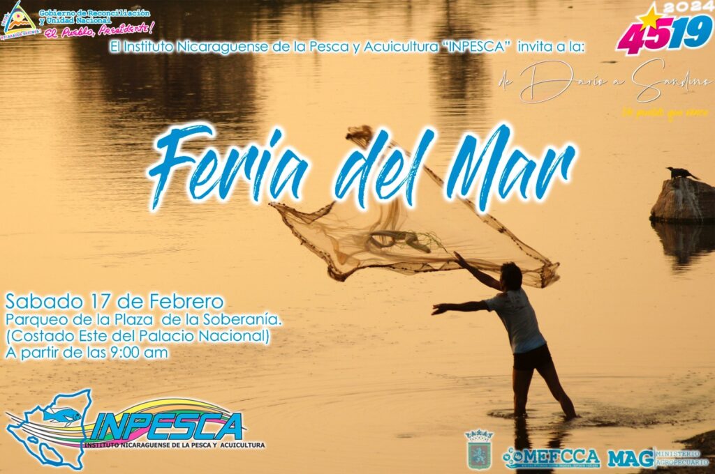 El Instituto Nicaragüense de la Pesca y Acuicultura (INPESCA), invita a las familias nicaragüenses a la Feria del Mar que se realizará este sábado 17 de febrero.