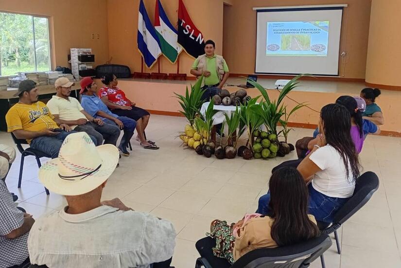 El INTA, desde el Centro de Tecnologías Agropecuarias Samuel Law, Kukra Hill-Región Autónoma del Caribe Sur, presentó Técnicas para la selección de semillas y establecimiento de viveros de coco para la producción de plántulas, con participación de productores de la zona.