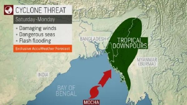 A su vez, el Departamento Meteorológico de India alertó que Mocha se ha convertido en una tormenta ciclónica muy severa, entretanto, se prevén marejadas de 2.5 metros que pueden inundar el litoral.