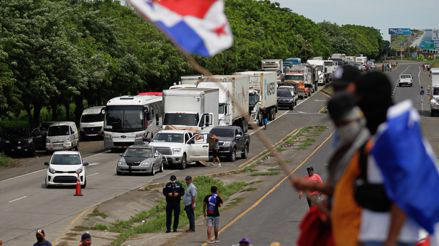 Con enormes camiones o con barricadas ciudadanos panameños se mantienen en  la autopista Panamericana en Panamá, mientras el gobierno y sindicatos negocian con las autoridades para que bajen los precios de los combustibles, alimentos y medicinas.