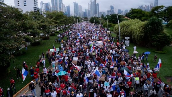 Los protestantes exigen la derogación del contrato minero Ley 406 que daría una concesión por 20 años a la empresa canadiense First Quantum, que pretende explotar cobre al norte de la nación.