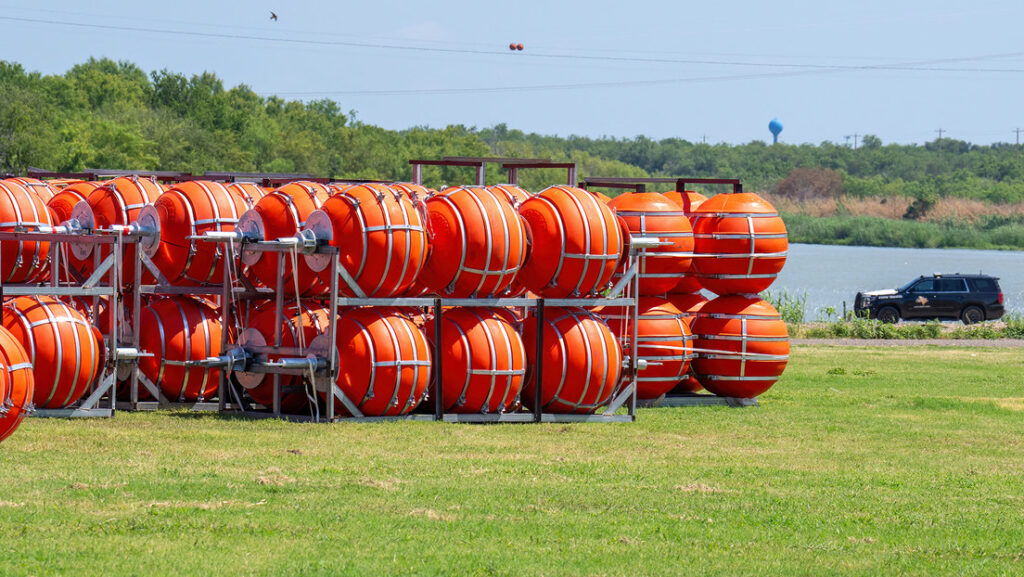 El juez federal de distrito David Ezra, indicó en una orden premilitar que el estado deberá reposicionar a sus expensas, todas las boyas, anclas y otros materiales relacionados que componen la barrera flotante colocada en el río.