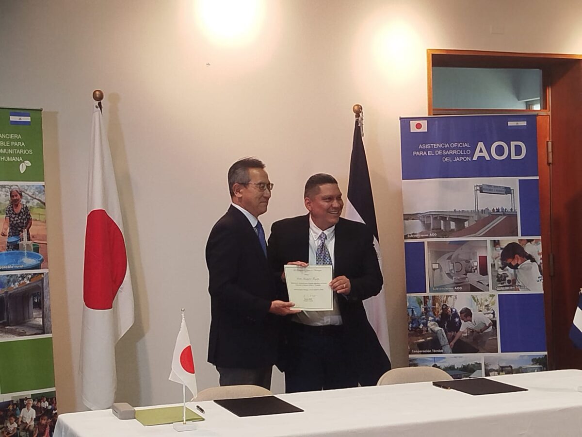 Como parte del Programa de Asistencia Financiera no Reembolsable para Proyectos Comunitarios de Seguridad Humana, el Embajador de Japón en Nicaragua, Masahiro Ogino, firmó tres contratos de donación para la adquisición de una ambulancia equipada y dos camiones compactadores de desechos sólidos.