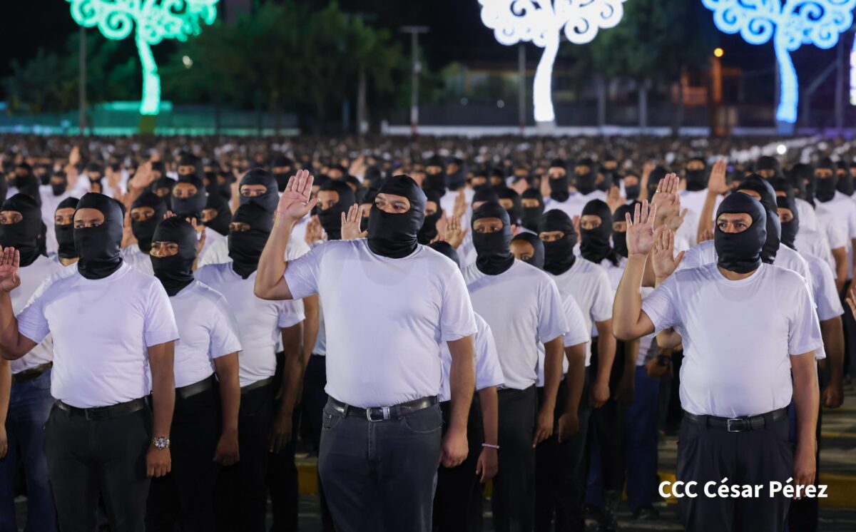 La Copresidenta de Nicaragua, Rosario Murillo, tomó juramentación de la Policía Voluntaria Comandante Julio Buitrago, durante el acto realizado en la Plaza la Fe.