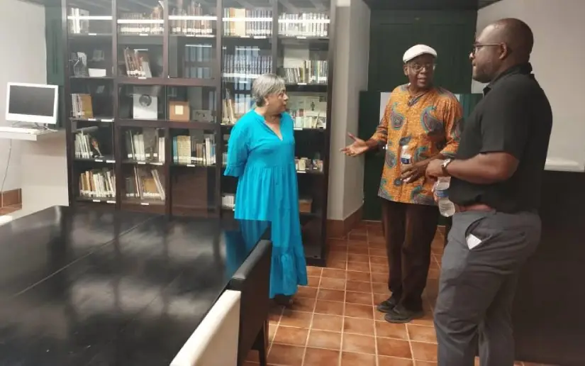 Con la Poesía, el Arte, la Cultura, como puente, junto al Ministro Consejero Glen Cuthbert, mientras recorrían los espacios y biblioteca de este Centro de las Artes, que conserva libros de nuestro Darío Universal, hablaron de la Obra de Poetas de Cuba y Nicaragua, explorando posibles espacios de colaboración, realización de actividades conjuntas, la primera dedicada a celebrar los Abriles Victoriosos de Cuba y Nicaragua, sus Conquistas de Paz y Soberanía.