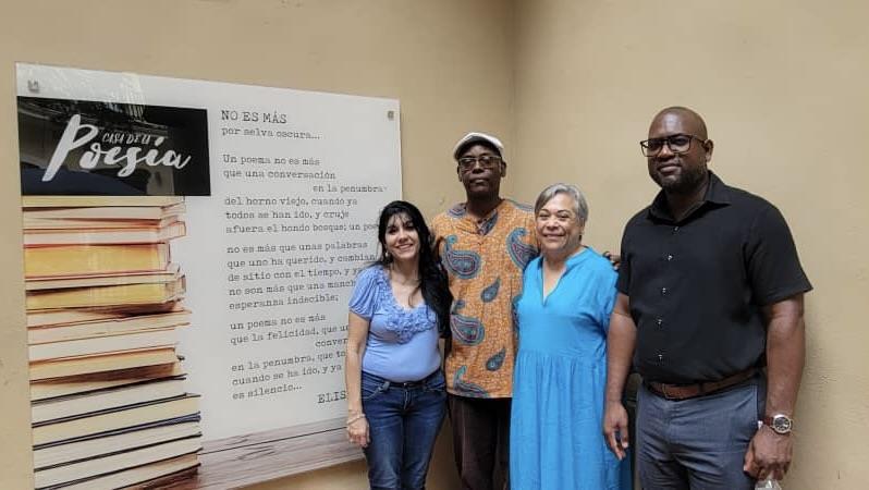El poeta, narrador oral, cantautor y promotor cultural, Sinecio Verdecia Díaz, Director del Centro dio la bienvenida a nuestra Embajadora, Cra. Guisell Morales Echaverry y rodeados de versos, conversaron sobre el papel de los intelectuales, de los escritores, de los artesanos de la palabra y metáforas, de las Casas de Cultura y Creatividad de Cuba y Nicaragua, en la forja de la Identidad y la Memoria de los Pueblos, en sus Luchas y Victorias.
