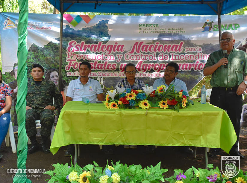 Durante la actividad, el segundo jefe del Estado Mayor de la Defensa Civil, Teniente Coronel Porfirio de Jesús Méndez Sánchez, transmitió el saludo del Comandante en Jefe de las Fuerzas Militares del Ejército de Nicaragua, General de Ejército Julio César Avilés Castillo, y les manifestó el compromiso de continuar desarrollando el plan de manera sostenida, las tareas y misiones para el control y sofocación de incendios forestales, agropecuarios y maleza que se presenten en la región.