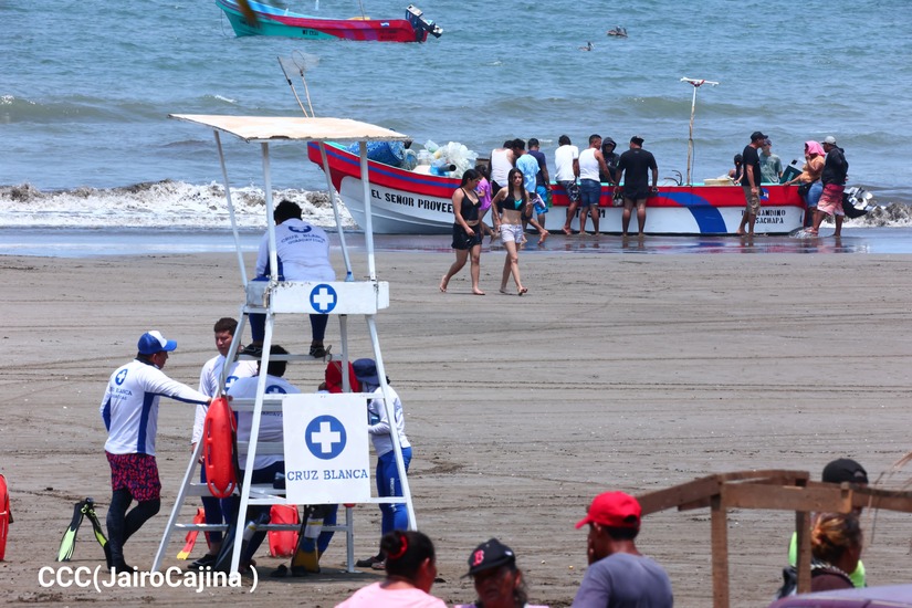 Asimismo, la turista Kimberly Jiménez, que se dirigió junto a sus hijos a Pochomil, aseguró que “Es bonito y es económico. Venimos con toda la familia y les digo a los que no conocen que vengan que es un lugar calmo. Está la Cruz Blanca y la policía garantizando el orden”.