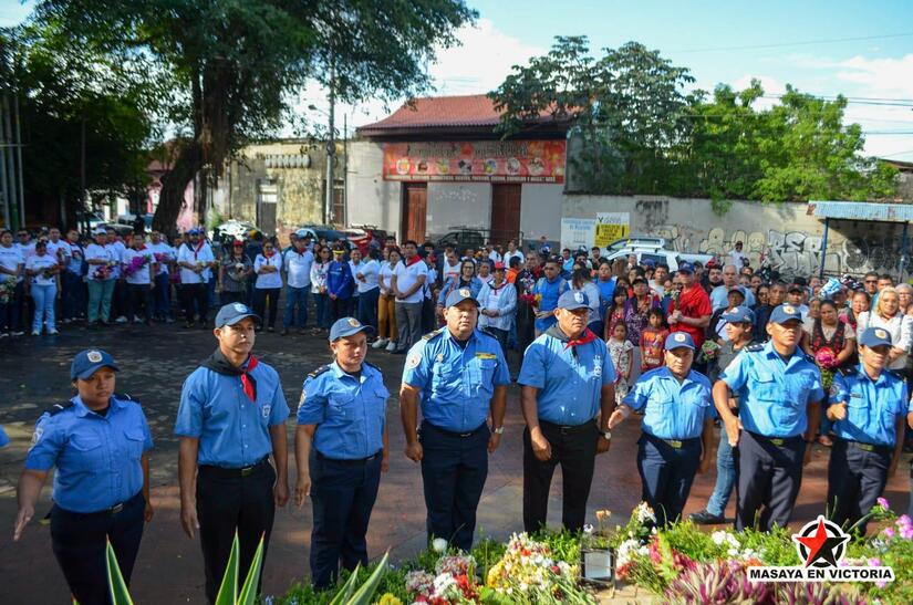 Para concluir esta significativa jornada, las Familias de Masaya participaron en un derroche de cultura, acompañado de una simbólica entrega de flores de patio, realizada por las diferentes Unidades de Victoria del Departamento, como muestra de respeto, gratitud y memoria viva hacia nuestro Héroe y Mártir.