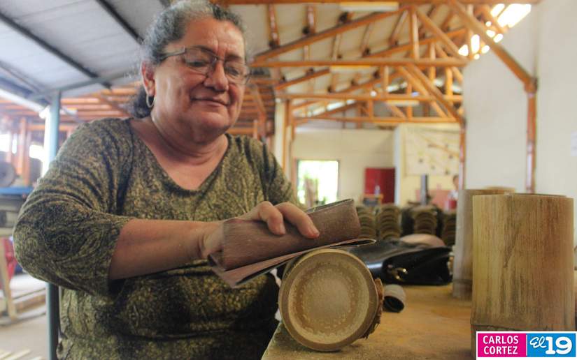 Claudia Mairena, de la Dirección de Pequeños Negocios del MEFCCA, dio a conocer que cada sábado se imparte el taller de bambú a los emprendedores.