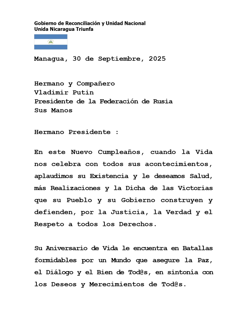 Mensaje al Presidente Vladimir Putin en su Cumpleaños