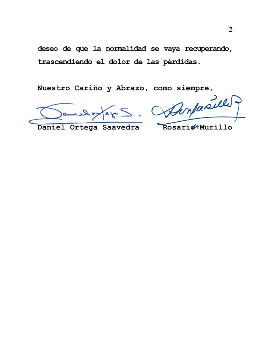 Consternados por la pérdida de valiosas Vidas en los incendios que han tenido lugar en Hong Kong, enviamos a Usted nuestra más profunda Solidaridad, pidiéndole hacer llegar a las Familias afectadas el Cariño y Oraciones, nuestros, y de las Familias nicaragüenses.