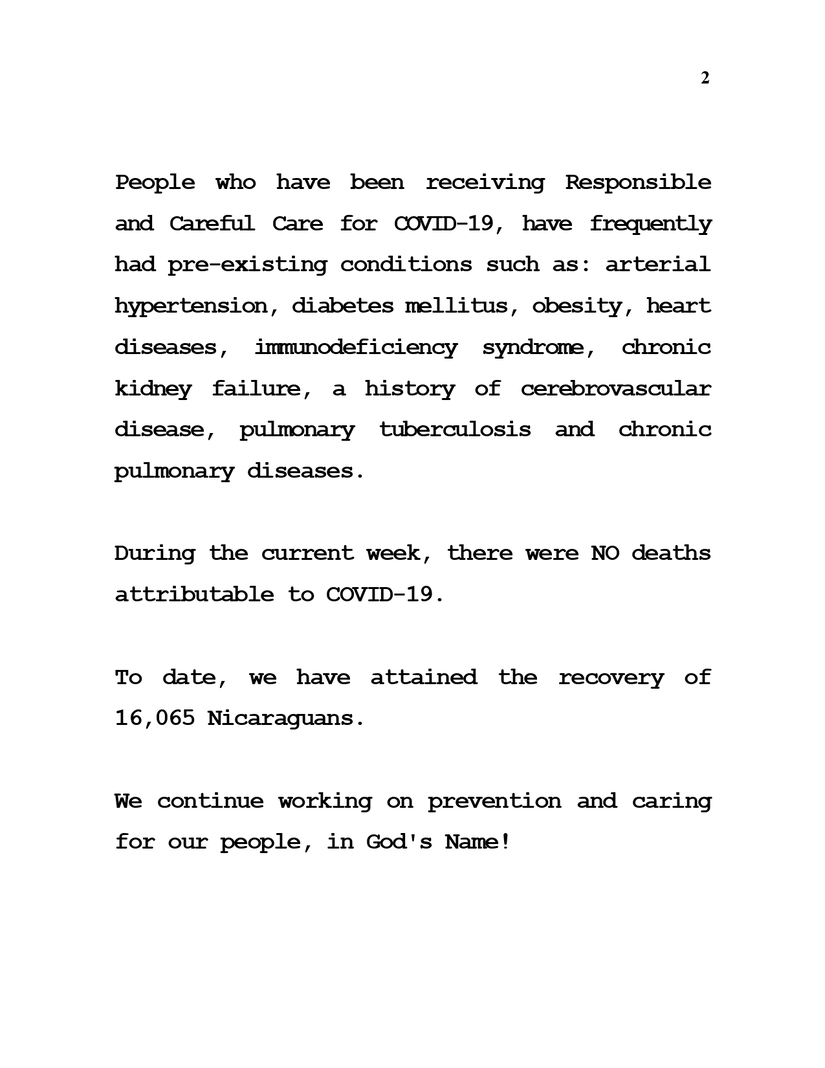 During the current week, from 25th March to 1st April 2025, we have attended and provided Responsible and Careful Care to 5 Nicaraguans confirmed to be COVID-19 positive.