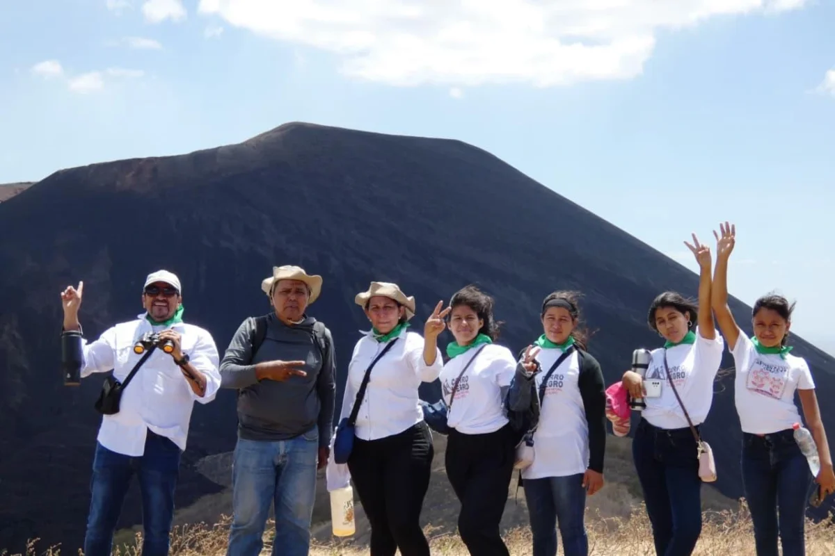 La jornada se desarrolló al pie del volcán más joven de Centroamérica el Volcán Cerro Negro, destino que recibe anualmente a más de 50,000 turistas de distintas partes del mundo. Durante la actividad, 30 Mujeres Líderes Comunitarias recorrieron las acumulaciones de arena de origen volcánico del lugar y fortalecieron sus conocimientos sobre la historia geológica del volcán, la Cordillera de Los Maribios y la biodiversidad del ecosistema.