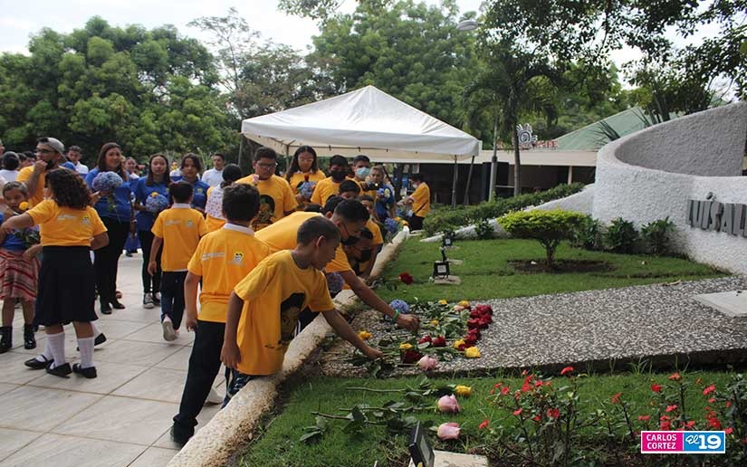 Miembros de la Federación de Estudiantes de Secundaria (FES) depositaron este martes flores en la tumba del niño héroe, Luis Alfonso Velásquez Flores, en el 44 aniversario de su tránsito a otro plano de vida.