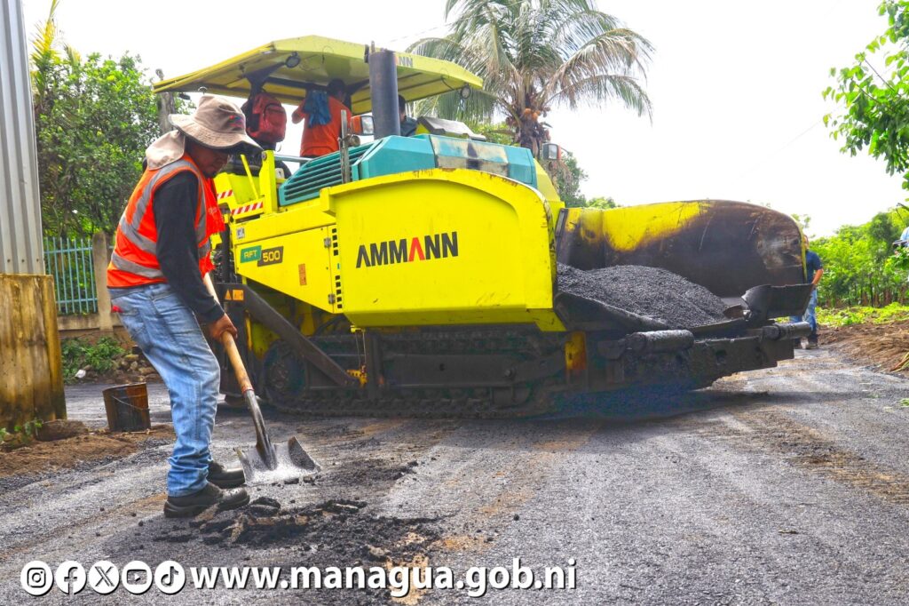 La Alcaldía de Managua (ALMA), realiza obras de revestimiento asfáltico de 13 cuadras en la comarca San Antonio Sur, en el distrito V, como parte del Programa Calles para el Pueblo.