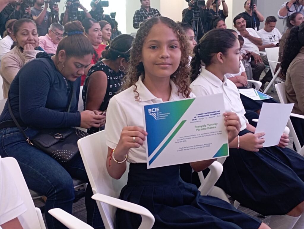 El Banco Centroamericano de Integración Económica (BCIE) otorgó a 50 estudiantes de 7mo grado de Nicaragua una beca económica que les permitirá concluir sus estudios secundarios en el año 2027.