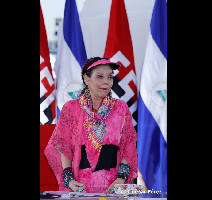 “Hoy como cada 19 de julio nos sentimos más comprometidos”, manifestó Rosario, quien destacó el heroísmo del pueblo nicaragüense que vive en espíritu y en amor.