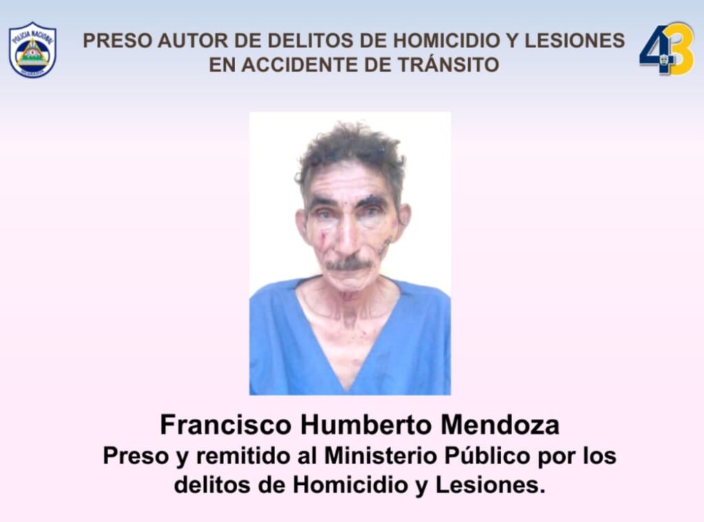 La Policía Nacional remitió al Ministerio Público al conductor Francisco Humberto Mendoza por los delitos de homicidio y lesiones en el accidente de tránsito ocurrido el lunes en el kilómetro 47 de la carretera Tipitapa a Malacatoya en la comunidad El Papayal, que dejó como resultado 4 fallecidos y seis lesionados.