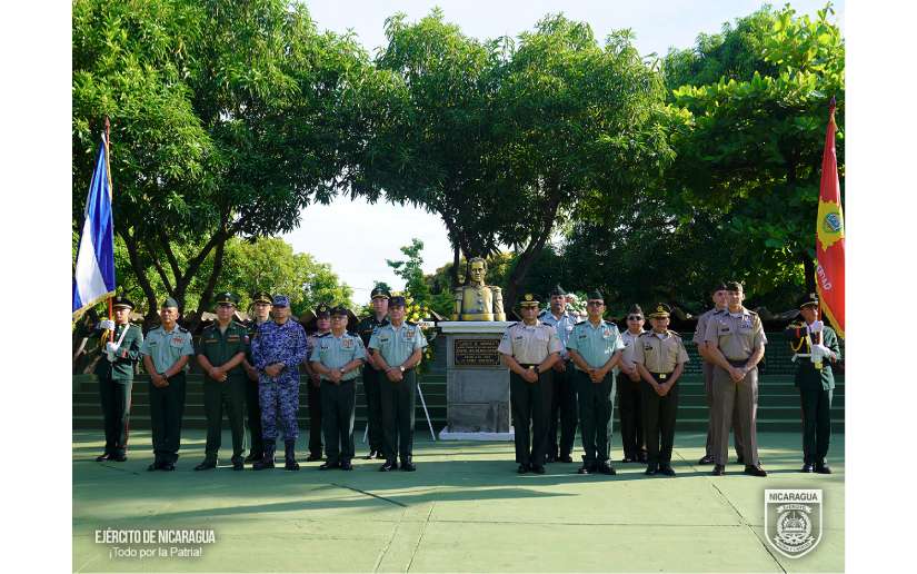 El Ejército de Nicaragua consecuente con el lema de que “Somos el Pueblo mismo uniformado trabajando en su propio beneficio”, el 12 de agosto de 2024, en el Centro Superior de Estudios Militares “General de División José Dolores Estrada Vado” (CSEM), se realizó ceremonia de colocación de ofrendas florales en conmemoración del 155 aniversario del paso a la inmortalidad del Héroe Nacional, “General de División José Dolores Estrada Vado”, ante el busto erigido en su honor, en reconocimiento a su legado histórico y patriótico.