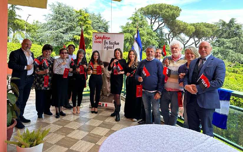 La Compañera Mónica Robelo, Embajadora de Nicaragua en Italia, transmitió a los invitados presentes el fraterno saludo del Presidente-Comandante Daniel Ortega y de la Vicepresidenta, Compañera Rosario Murillo, destacando el papel de Sandino en la Historia de Nicaragua en particular y de América Latina en general, como forjador de rebeldía y constructor de Soberanía. Al ejemplo que nos dio el Ejército Defensor de la Soberanía Nacional, inspirador de toda la Historia del Sandinismo.