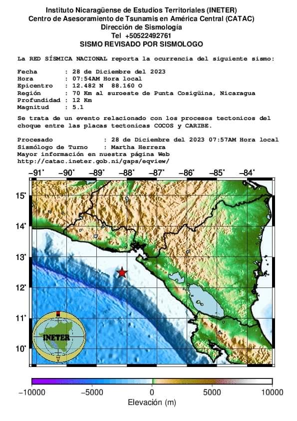 INETER destaca que esto se trata de un evento relacionado con los procesos tectonicos entre las placas Cocos y Caribes.