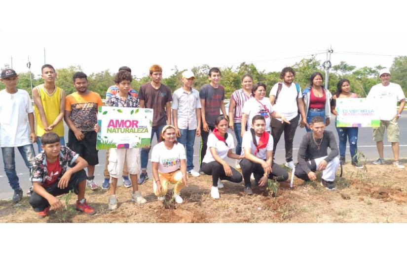 En conmemoración al onceavo aniversario del Tránsito a la Inmortalidad del Comandante Tomás Borge, jóvenes del Movimiento Ambientalista Guardabarranco plantaron árboles forestales de diversas especies en la rotonda La Garita, en la ciudad de Managua.