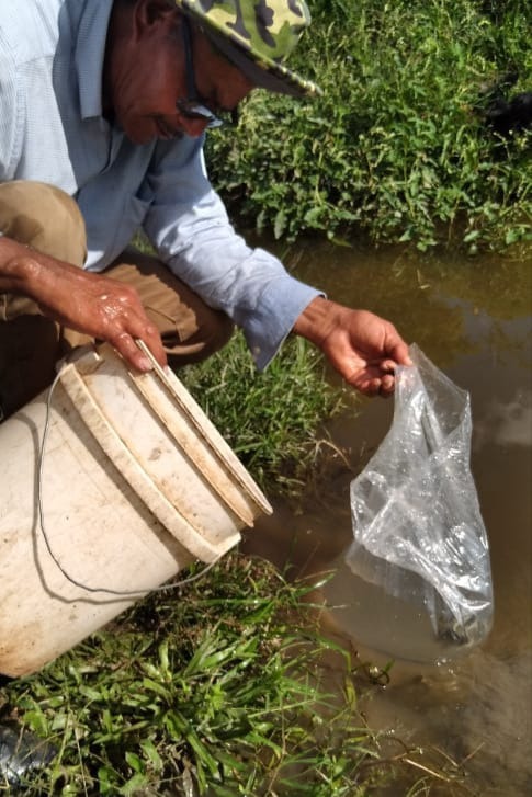 Juan Silvio Rugama Agüero, productor capitalizado, destacó que con esta dotación de 70 alevines mejorará la dieta alimenticia de su familia, así como también se dedicará a la comercialización y de esa manera obtener ingresos para su hogar.