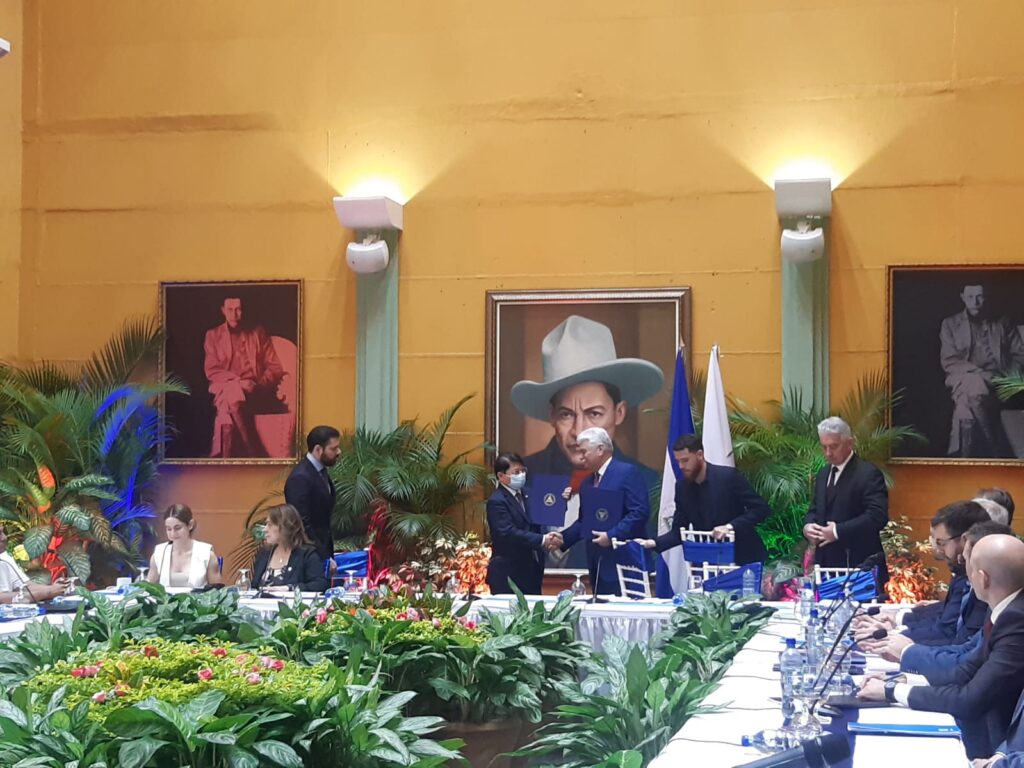 La firma estuvo a cargo del canciller de Nicaragua, Denis Moncada y Oleg Khramov, secretario adjunto del Consejo de Seguridad de la Federación de Rusia, quien encabeza una delegación que se encuentra en el país.