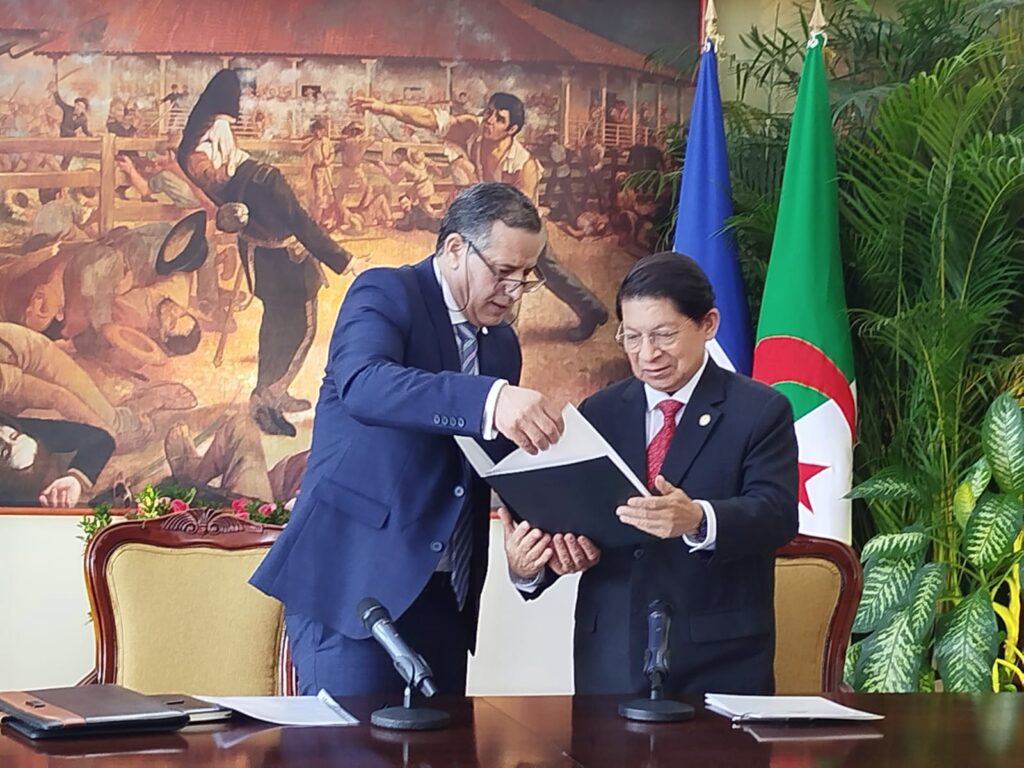 Por su parte, el embajador Menguellati, resaltó su gratitud por ser el primer embajador de su país con residencia en Managua y anunció que tiene la orientación de fortalecer aún más los lazos de amistad y cooperación en las diferentes áreas.