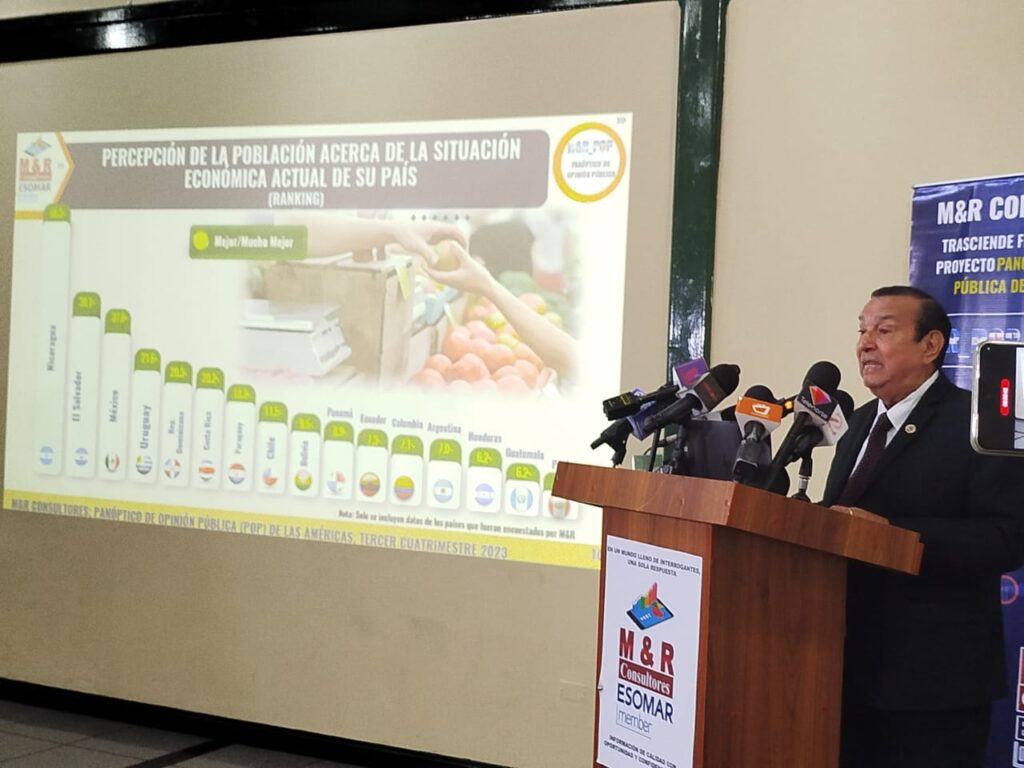 El gerente general de MyR Consultores, Raúl Obregón, dijo que Nicaragua alcanza el 77.8% en las expectativas sobre la situación económica para los próximos 12 meses, en segundo y tercer lugar lo ocupa el Salvador y México. Y en perspectiva de economía familiar para igual período, Nicaragua sigue a la cabeza con 75.4%.