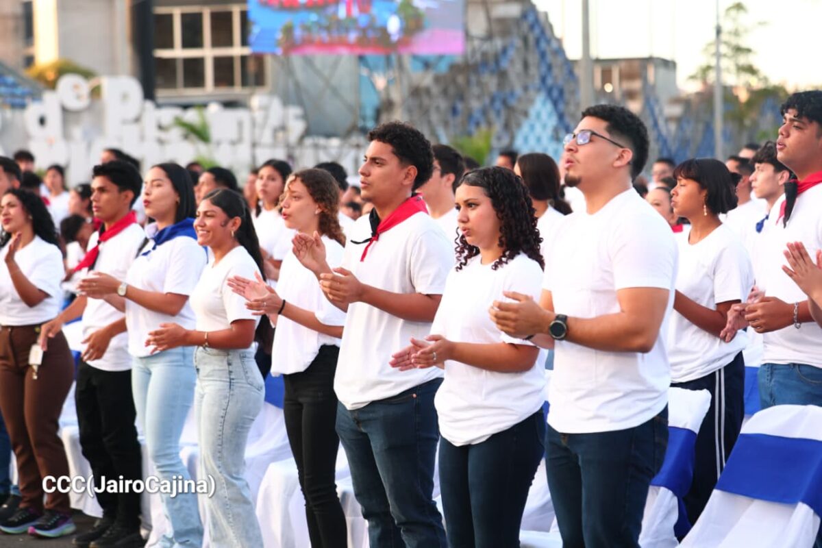 El evento reunió a las autoridades nacionales, y miembros de la Juventud Sandinista para rendir homenaje al legado histórico de lucha, dignidad y compromiso con la soberanía nacional, así como para reafirmar el espíritu de reconciliación y paz que impulsa el Gobierno de Reconciliación y Unidad Nacional, bajo la conducción del comandante Daniel Ortega y la compañera Rosario Murillo.
