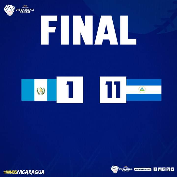 La Selección Nacional de Béisbol de Nicaragua U-18 noqueó 11×1 a su similar de Guatemala y clasificó a la ronda eliminatoria del Torneo Panamericano de la categoría que se disputa en Panamá.