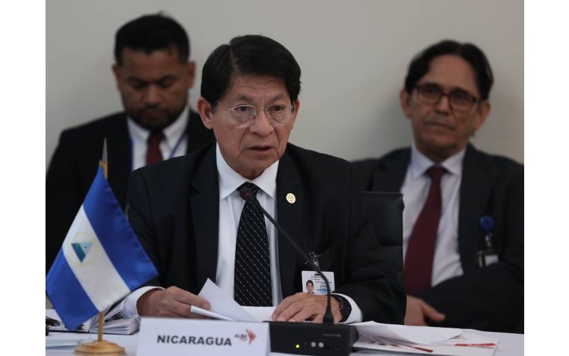 En representación de nuestro Gobierno de Reconciliación y Unidad Nacional, participó el Compañero Denis Moncada Colindres, Ministro de Relaciones Exteriores de Nicaragua, transmitiendo primeramente los Saludos Fraternos de parte de nuestro Comandante Daniel Ortega Saavedra, Presidente de la República de Nicaragua y de la Compañera Vice Presidenta Rosario Murillo Zambrana, con sus mejores deseos de Salud, Paz y Prosperidad para cada uno de los países presentes, para sus Pueblos y Gobiernos, y compartió los avances de la política socioeconómica del buen gobierno de Nicaragua y sobre la crisis internacional que generan las potencias occidentales con su obsesión de hacer prevalecer el hegemonismo imperial, debi-litando el multilateralismo y el nuevo orden internacional.