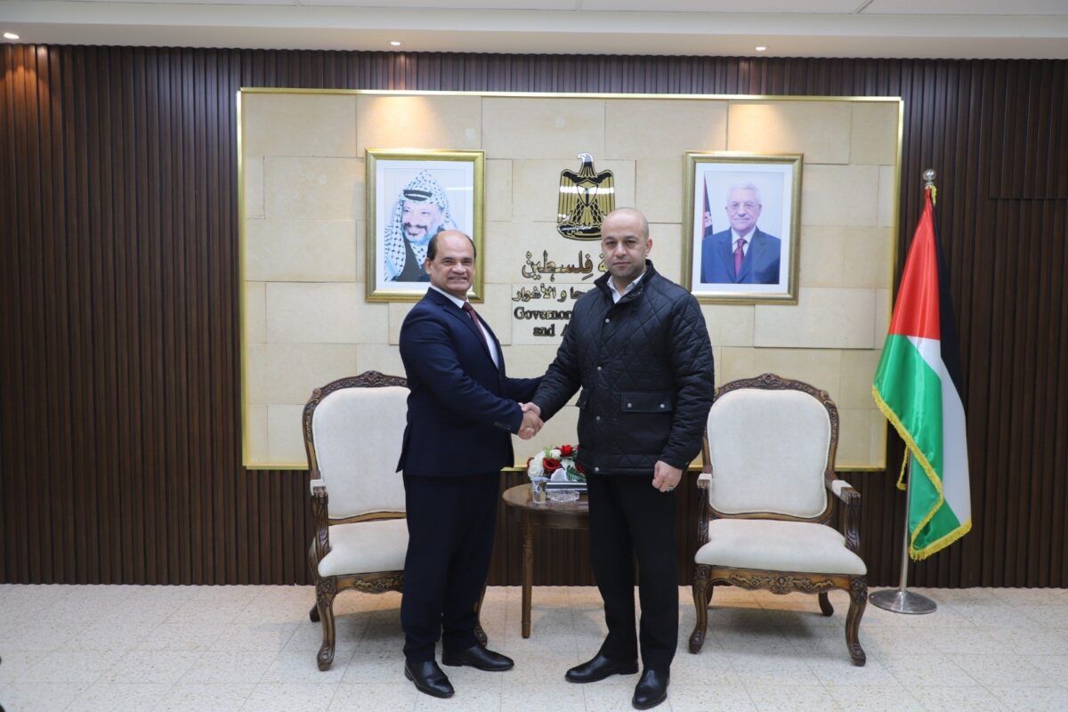 Hoy Jueves 18 de Diciembre del 2025, sostuvimos un satisfactorio encuentro con el Gobernador de Jericó y el Valle del Jordán, Doctor Hussein Hmaiel, quien estaba acompañado del Presidente de la Cámara de Comercio, Señor Tayseer Al-Humeidi; del Vicealcalde de Jericó, Señor Fathi Barahmeh; y del miembro del Concejo Municipal Señor Zakaria Al-Fityani y la Compañera Mariam Natche, Asistente de la Gobernación.