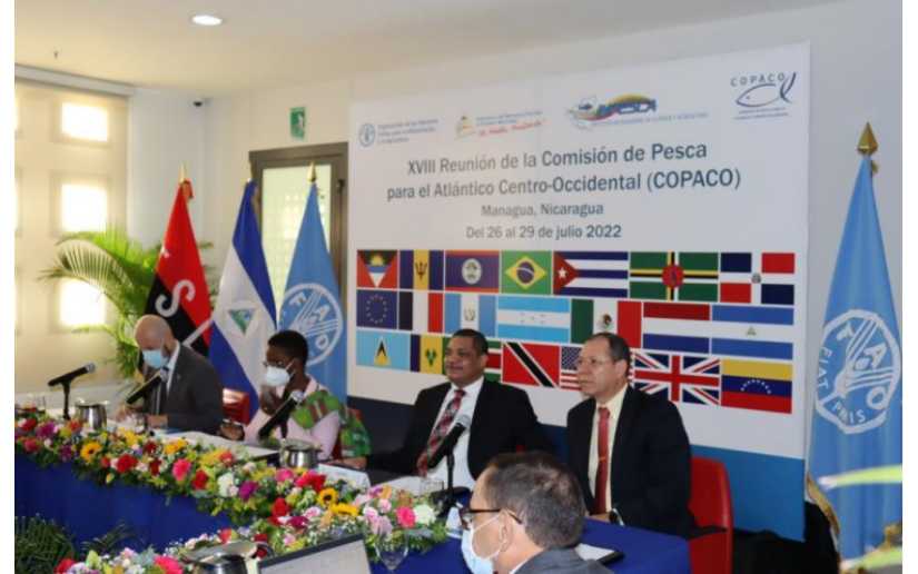 Nicaragua es sede de la Reunión Anual de la COPACO, que se desarrolla del 26 al 29 de Julio, la inauguración fue presidida por el Compañero Iván Acosta, Ministro de Hacienda y Crédito Público en representación del Gobierno, el Señor Iván León, Represéntate de FAO Nicaragua, la Señora Ivette Die Ouadi, Secretaría General de la COPACO y el Compañero Edward Jackson Abella, Dirección General del INPESCA.