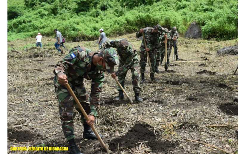 El Ejército de Nicaragua consecuente con el lema de que “Somos el Pueblo mismo uniformado trabajando en su propio beneficio”, del 15 al 17 de agosto de 2022, a través de la Brigada de Infantería Mecanizada “General Augusto C. Sandino”, en coordinación con el Ministerio del Ambiente y los Recursos Naturales (MARENA), el Movimiento Ambientalista Guardabarranco, la alcaldía de Managua y pobladores de la comarca de Nejapa, participaron en jornada de reforestación ambiental, en el costado suroeste de la laguna de Nejapa, municipio de Managua, departamento de Managua, como aporte a la conservación del ambiente y los recursos naturales.