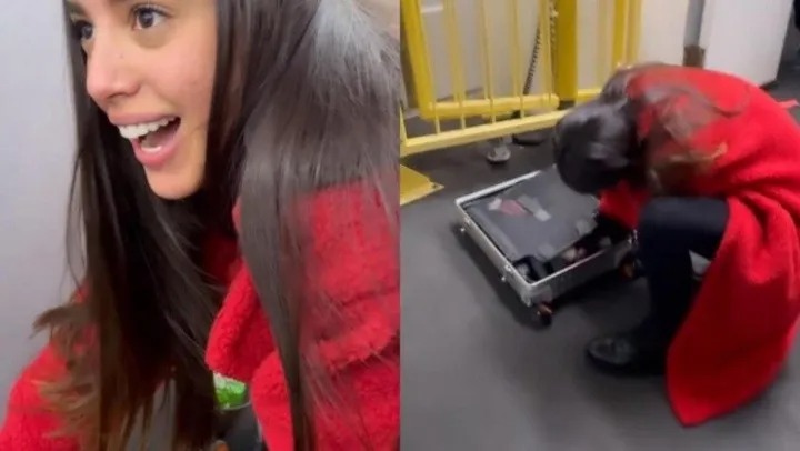 Una joven tiktoker pasó vergüenza cuando abordó un avión y empezó a sonar algo en el interior de su valija, rápidamente el personal de la línea aérea le solicitó que abriera el equipaje y ante la mirada y risa de los presentes descubrieron el insólito objeto.