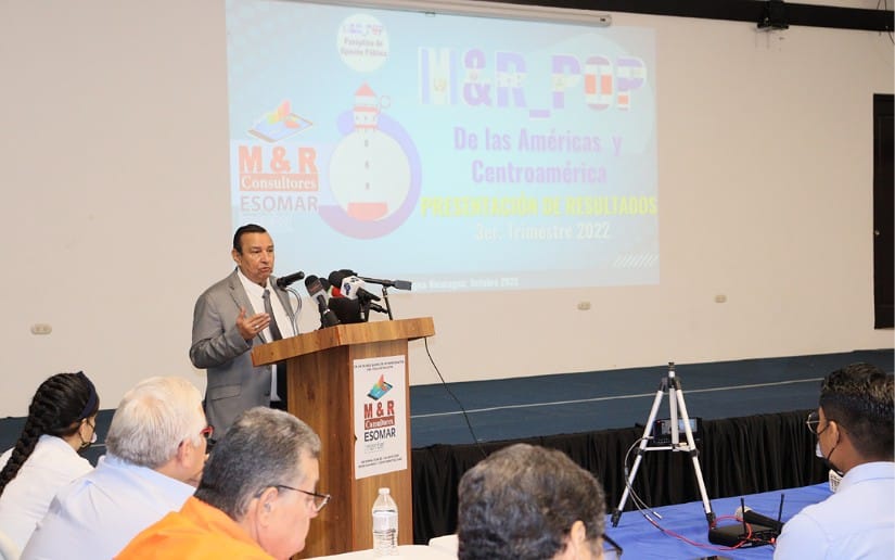 La firma consultora M&R presentó este martes los resultados del Estudio Panóptico de Opinión Pública de las Américas y Centroamérica realizado en su tercera edición 2022, donde se refleja una vez más que el presidente Daniel Ortega se mantiene entre los mejores mandatarios de América Latina.
