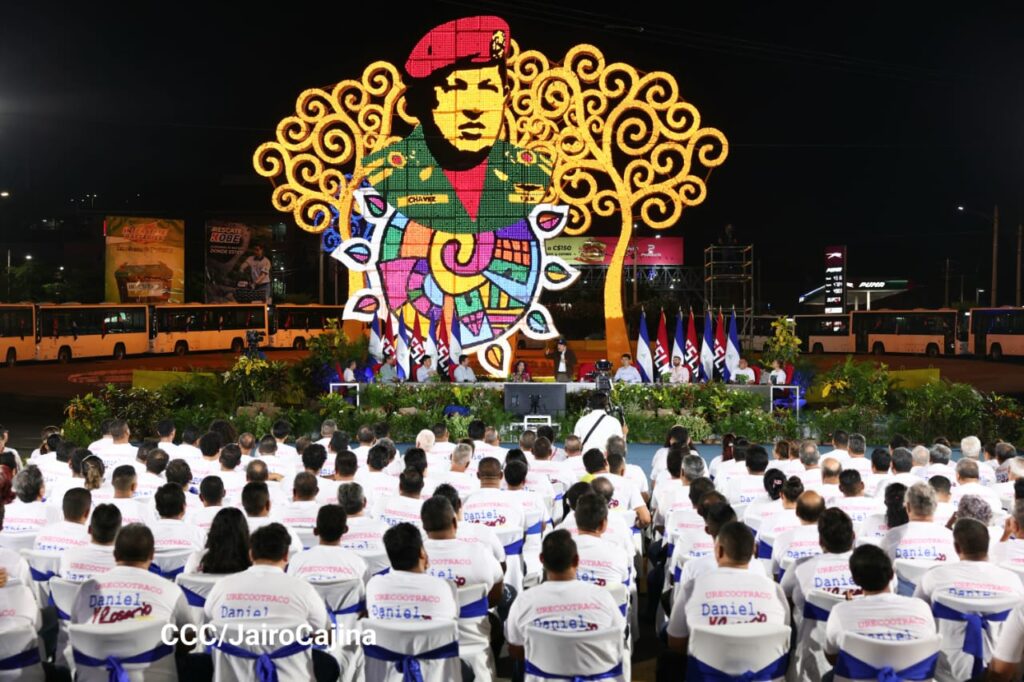 En un evento conmemorativo realizado en la Avenida de Bolívar a Chávez, el Presidente de Nicaragua comandante Daniel Ortega Saavedra junto con la Vicepresidenta Rosario Murillo, encabezaron el acto de entrega de 100 nuevos autobuses Yutong, provenientes de la República Popular de China, los cuales fortalecerán el servicio de transporte intermunicipal en el país.
