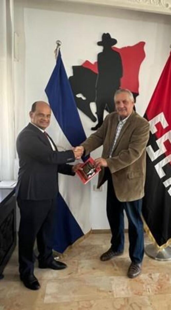 Nuestro Embajador, Compañero Gadiel Arce Mairena, se congratuló por la honrosa y honorable visita del ilustre poeta y escritor Amigo de Nicaragua, expresándoles especiales saludos de nuestros Copresidentes Comandante Daniel Ortega y Compañera Rosario Murillo, enfatizando los esfuerzos centrales de nuestro Gobierno en la promoción de la Cultura y Educación para todo el Pueblo.