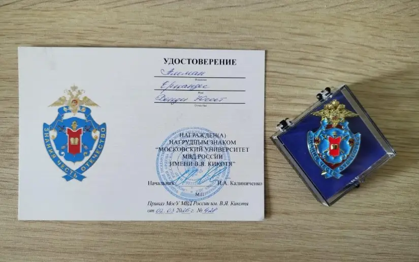 Representando con honor y alta profesionalidad el desempeño de nuestra Policía Nacional, la Teniente Wendy Yuset Alemán Hernández, se destacó en sus estudios recibiendo la Medalla e Insignia de la Universidad de Moscú V. Y. Kikotya, avalada por el Ministerio del Interior de la Federación de Rusia, Universidad en la que cursa su último año en la Carrera de Protección Jurídica de la Seguridad Nacional con especialización en Derecho Penal en los Órganos de Asuntos Internos.