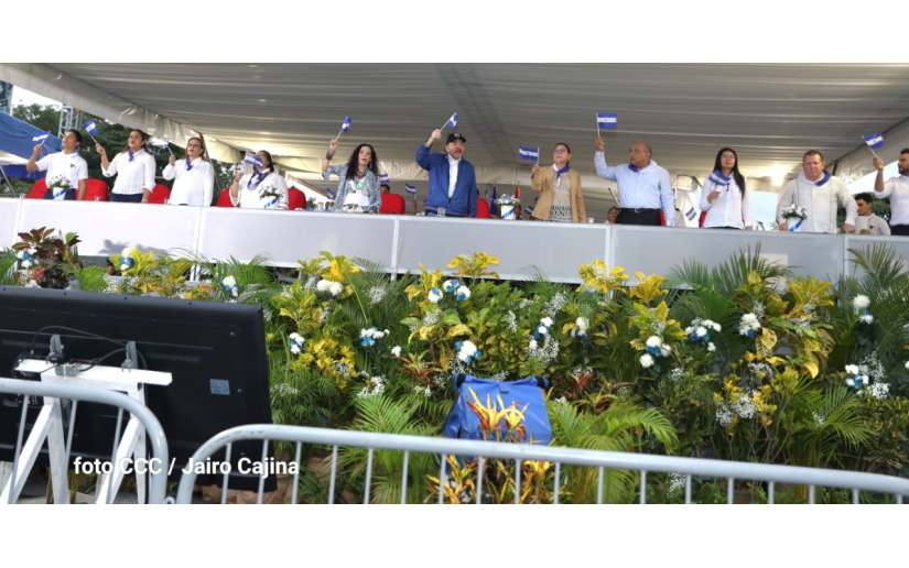 Ahora lo que tenemos es un Pueblo viendo hacia la Luz, tanto viendo hacia el Futuro, caminando hacia el Futuro, bajo el Sol, bajo la lluvia, pero con Alegría y con ese Espíritu que nos dan nuestros Héroes y Mártires de la Batalla que se libró en San Jacinto, y en diferentes Territorios de nuestro País, incluyendo Batallas Heroicas como la de Rivas.