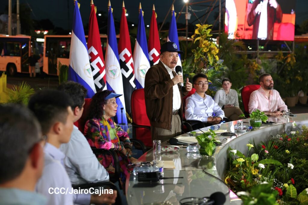 El presidente de la Republica de Nicaragua, Comandante Daniel Ortega Saavedra, recordó la hazaña de la Toma del Palacio Nacional, durante la entrega de 100 nuevos autobuses provenientes de la República Popular de China, que se llevó a cabo en la Avenida de Bolívar a Chávez.
