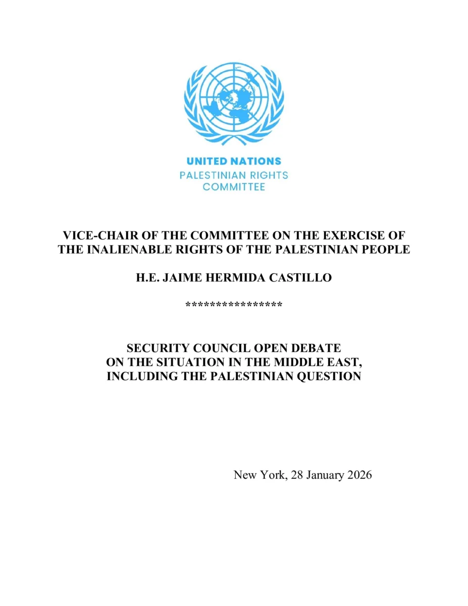 El Compañero Hermida, denunció que el restablecimiento de asentamientos ilegales israelíes en Cisjordania ocupada, las cuales son acciones coloniales ilegales que buscan abiertamente destruir la contigüidad del territorio palestino y excluir la posibilidad de un Estado palestino viable e independiente, erosionando la confianza que aún queda en las negociaciones que puedan dar un resultado justo para el Pueblo palestino.